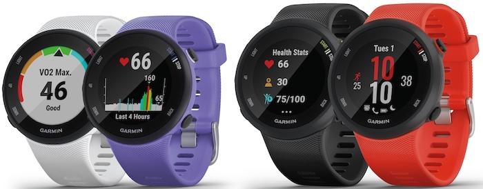 В этом году вместе компания Garmin представила новинку, умные часы Forerunner 45, которые получили много полезных функций и красивый корпус. Первое, что бросается в глаза, это новый круглый дизайн устройства, со стандартными для Garmin кнопками управления. Цветной дисплей и доступность сменных циферблатов делают новинку универсальной, подходящей под любой образ пользователя. На задней крышке расположен новый оптический датчик для измерения частоты сердечных сокращений Garmin Elevate 3 поколения, который отслеживает пульс 24/7.