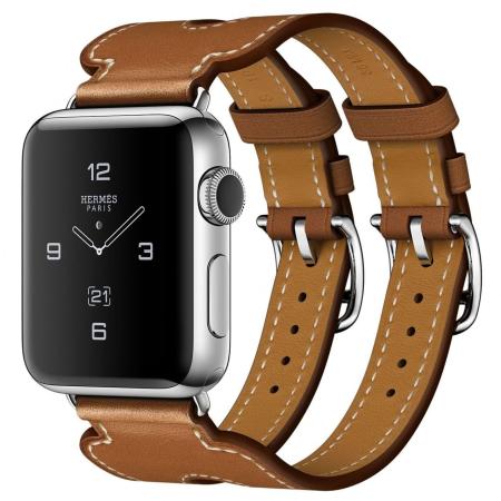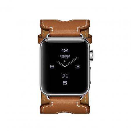 Apple Watch Hermes Series 2 38mm Stainless Steel Case with Fauve Barenia Leather Double Buckle Cuff