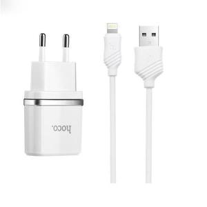 Dual СЗУ Hoco С12 2.4 A + кабель для iPhone Lightning (white)