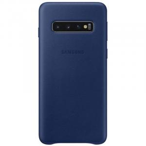 Кожаный чехол Leather Cover Samsung S10 черный темно-синий